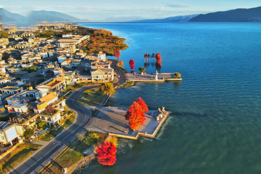 - Sau đó, đoàn di chuyển tham quan Hồ Nhĩ Hải – một trong “tứ đại mỹ quan” của Đại Lý, có thể đi xe đạp chạy trên tuyến đường đạo sinh thái cạnh Hồ Nhĩ Hải, check-in cung đường chữ S – nơi đóng bộ phim Đi đến nơi có gió. (Chi phí thuê xe đạp tự túc).