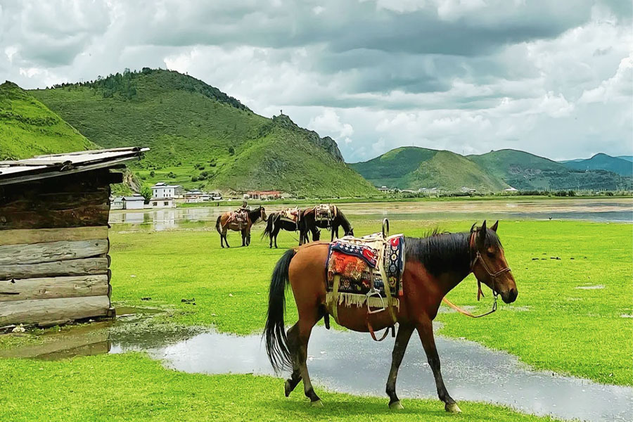 - Tiếp đến, đoàn tham quan Thảo nguyên Na Pháp Hải – thảo nguyên xanh ở Shangri-La. Tại đây, quý khách có thể trải nghiệm hoạt động cưỡi ngựa (chi phí thuê ngựa tự túc).