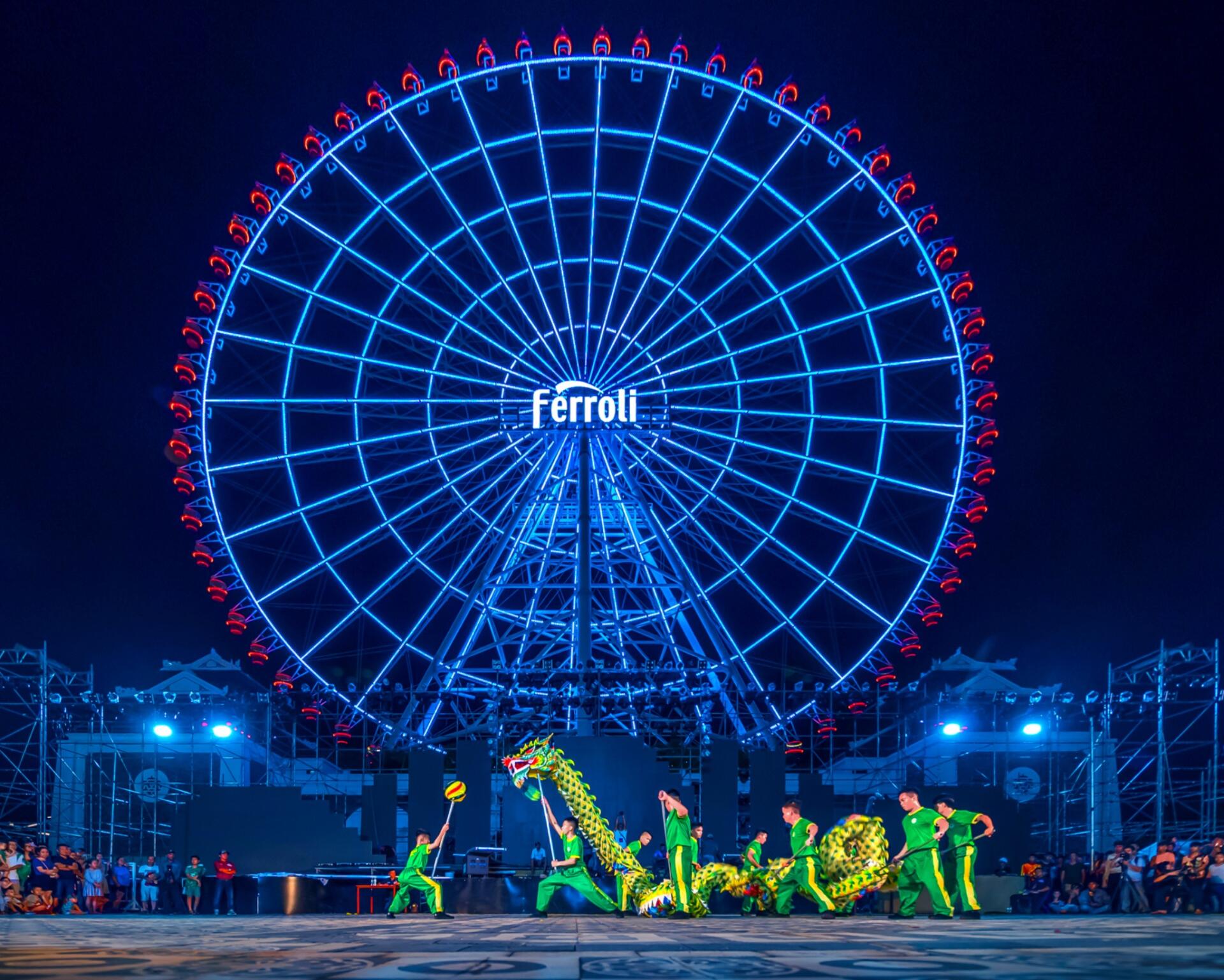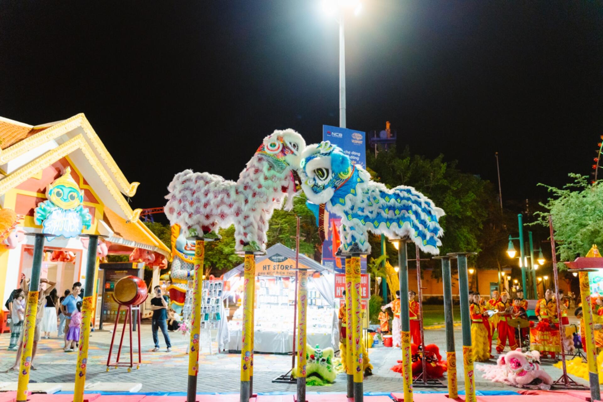 Các hoạt động trải nghiệm được bố trí dọc theo quảng trường Sun Wheel, tạo nên không gian tương tác sôi động, đa dạng và gắn kết giữa văn hóa truyền thống với trải nghiệm hiện đại. Du khách sẽ được ghé thăm khu vực triển lãm– nơi trưng bày các bảng giới thiệu về lịch sử, văn hóa và ý nghĩa của nghệ thuật lân sư rồng và giới thiệu về các nội dung của bộ môn lân sư rồng. Song hành cùng đó là khu trò chơi dân gian “du hành về tuổi thơ” như đập tay – đập chân, nhảy lò cò, cờ tướng và O-X, giúp du khách trải nghiệm không khí hội làng truyền thống giữa không gian hiện đại.