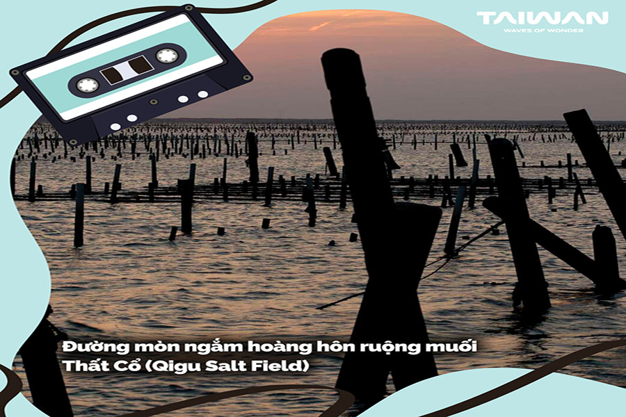 Con đường nhỏ giữa những cánh đồng muối trắng tinh dẫn bạn đến một trong những khung cảnh hoàng hôn dịu dàng nhất Đài Nam. Ánh nắng cuối ngày nhuộm vàng không gian, mang theo chút buồn man mác – tựa như những khoảnh khắc lặng lẽ nhưng sâu sắc giữa Hoàng Vũ Tuyên và Lý Tử Duy.
