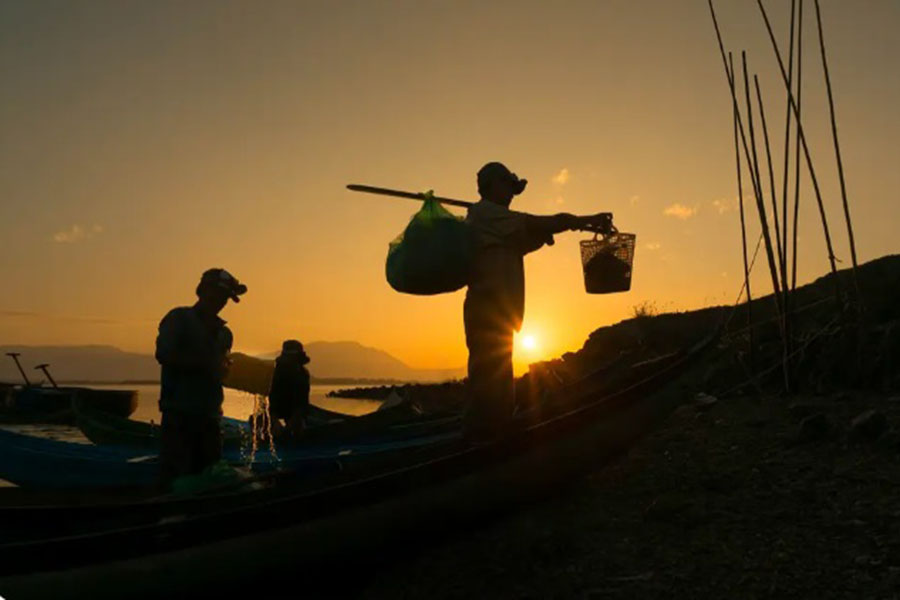 Những buổi bình minh trên đầm nước thanh vắng đẹp đến nao lòng. Mặt trời dần nhô lên từ những ngọn núi, vài tia nắng đầu ngày chiếu xiên xiên trên những con thuyền nhỏ nằm im lìm bên bờ. Không gian nhuộm vàng óng và tĩnh lặng mang một vẻ đẹp vừa lung linh lại vừa huyền bí.