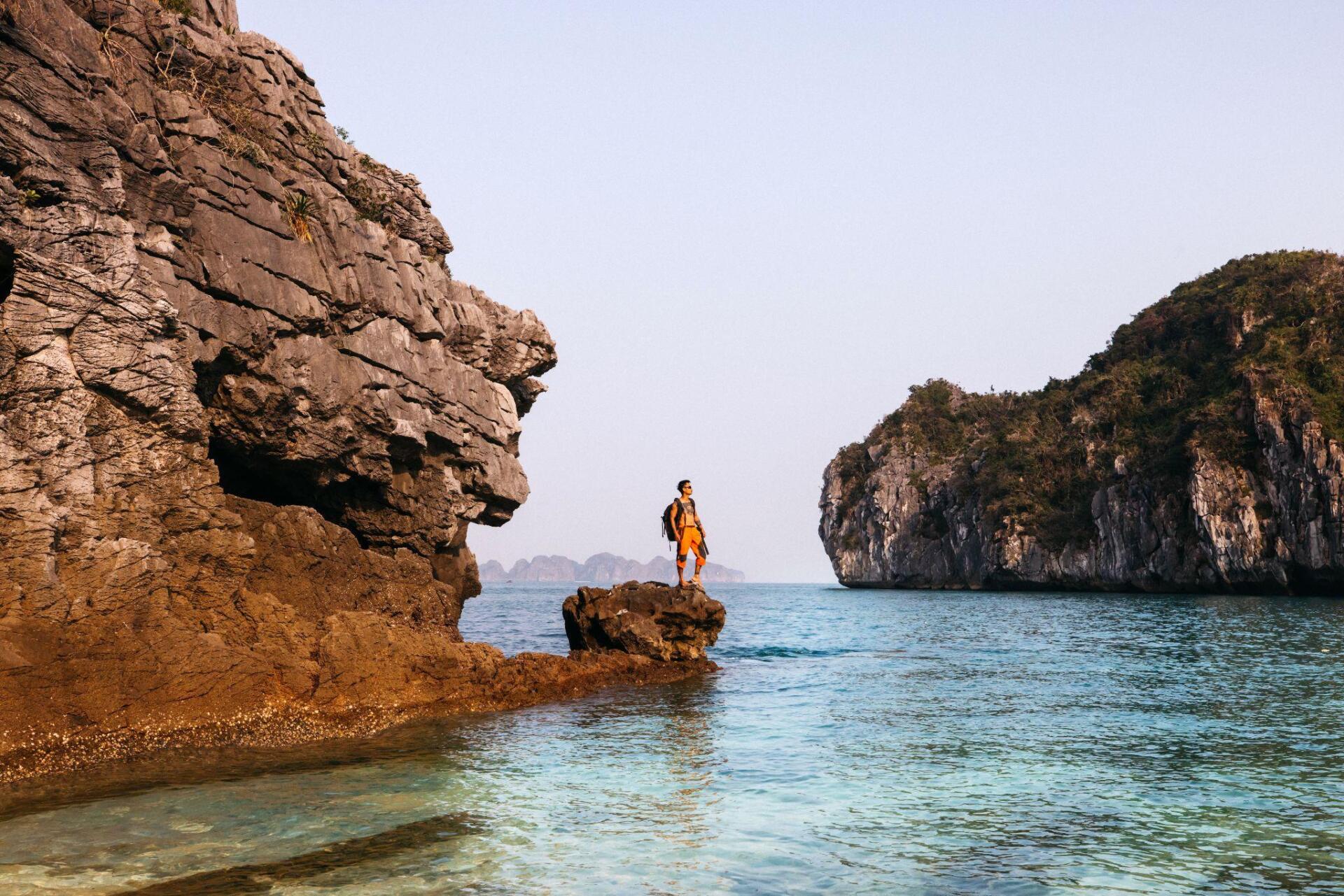 Vừa đặt chân đến đảo, bạn có thể bắt đầu chuyến đi bằng hành trình khám phá vịnh Lan Hạ – nơi được trang Thrillist ca ngợi là vịnh biển đẹp nhất Việt Nam. Đi tàu ra các bãi tắm hoang sơ như Ba Trái Đào, chèo kayak qua hang Sáng – Tối hay lặn ngắm san hô sẽ mang lại trải nghiệm hòa mình trọn vẹn vào thiên nhiên.