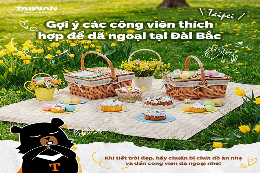 Vào những ngày nắng đẹp, bạn sẽ dễ dàng bắt gặp hình ảnh người Đài Loan mang theo một ít đồ ăn nhẹ, cà phê hoặc trà sữa, trải thảm dã ngoại trên bãi cỏ và thong thả tận hưởng buổi chiều trong công viên. Nếu muốn cảm nhận nhịp sống thường nhật của Đài Bắc, hãy thử dành một buổi dã ngoại nhẹ nhàng như thế.