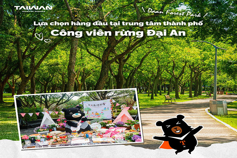 Công viên rừng Đại An (Daan Forest Park) – “lá phổi xanh” ngay giữa trung tâm thành phố – là điểm dạo bộ yêu thích của cả người dân lẫn du khách. Những con đường rợp bóng cây, hồ nước và bãi cỏ rộng tạo nên không gian lý tưởng để thư giãn sau một ngày khám phá.