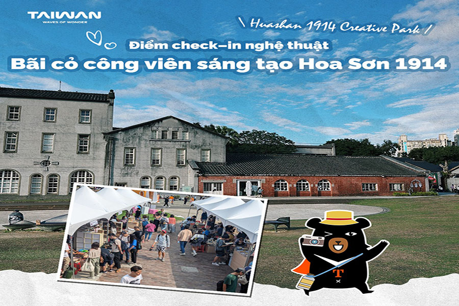 Nếu yêu thích nghệ thuật và sự sáng tạo, Công viên sáng tạo Hoa Sơn 1914 (Huashan 1914 Creative Park) sẽ là điểm dừng chân thú vị. Nơi đây thường xuyên tổ chức các triển lãm, sự kiện văn hóa, và bạn có thể ngồi nghỉ trên bãi cỏ sau khi tham quan, cảm nhận bầu không khí trẻ trung, đầy cảm hứng của Đài Bắc.