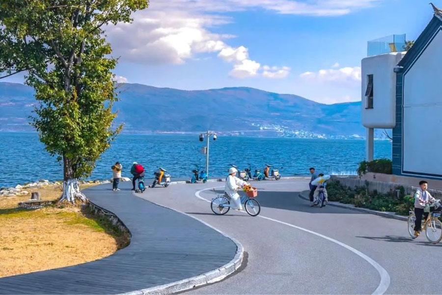 • Tại đây, đoàn có thể đi xe đạp chạy trên tuyến đường đạo sinh thái cạnh Hồ Nhĩ Hải, check-in cung đường chữ S – nơi đóng bộ phim Đi đến nơi có gió. (Chi phí thuê xe đạp tự túc).
