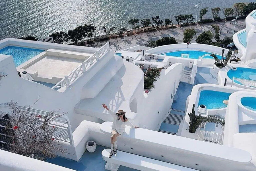 • Tiếp đến, quý khách di chuyển tới Santorini – phiên bản “Địa Trung Hải thu nhỏ”, view hướng ra hồ Nhĩ Hải (tự túc đồ uống nếu muốn check-in view toàn cảnh trên cao tại nhà hàng)