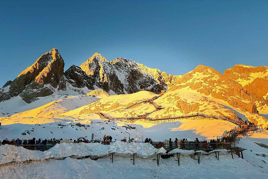 • Đối với khách hàng đăng ký thành công lên đỉnh Núi tuyết Ngọc Long, độ cao 4500m. Quý khách di chuyển bằng đường cáp Glacier. (Vui lòng báo lại đơn vị đặt tour đăng ký cáp treo 4500m trước 10 ngày so với ngày khởi hành, phụ thu 130 tệ/khách)