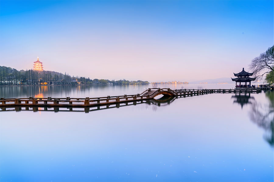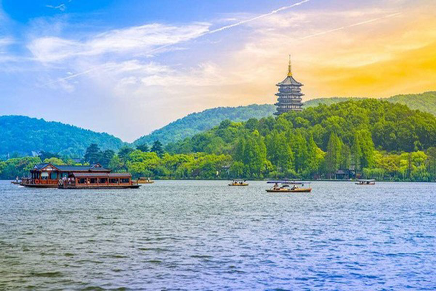 • Chiều tiếp tục tham quan: Du thuyền thưởng ngoạn cảnh đẹp Tây Hồ – được xem là đẹp và nên thơ nhất trong hơn 36 hồ có cùng tên ở Trung Quốc, ngắm Quả sơn, Đoạn kiều, Trường kiều, Tô Đê, Bạch Đê, Tam Đàn Ấn Nguyệt và Hoa Cảng Quan Ngư (bên ngoài) gắn liền với những truyền thuyết về Lương Sơn Bá – Chúc Anh Đài, Thanh xà – Bạch xà, và các tác phẩm của nhà thơ Lý Bạch.