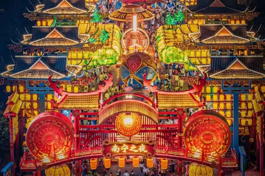- Xe đưa đoàn đến phố Nam Ninh Chi Dạ – Nanning Everbright City – phố về đêm tại Nam Ninh. Quý khách có thể xem các tiết mục biểu diễn dân tộc, thưởng thức các món ăn vặt đặc sắc của Quảng Tây và các vùng miền khác như phở ốc cay Liễu Châu, bánh bao Thiên Tân, thịt nướng Mông Cổ, gà nướng Hàn Quốc, bánh bay Ấn Độ … rất nhiều các đặc sắc ẩm thực khác nhau.