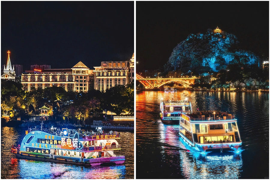 - Sau bữa tối, đoàn ngắm nhìn vẻ đẹp thơ mộng Khu thắng cảnh sông Liễu Giang về đêm. Quý khách có thể trải nghiệm đi du thuyền tại đây (chi phí tự túc)