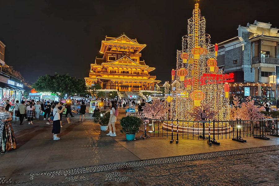 - Sau hơn 1 giờ đồng hồ ngắm nhìn Sông Liễu Châu, Đoàn di chuyển tới Phố Cổ Yaobu. Nơi đây có rất nhiều khu ẩm thực, khu vui chơi, chợ đêm, cửa hàng makeup, thuê đồ cổ trang,… Rất sôi động và náo nhiệt. Các hàng quán ở đây mở đến 2h sáng nên mọi người thoải mái vui chơi nhậu nhẹt….
