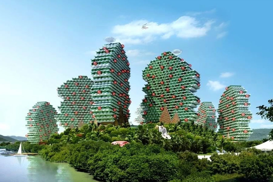 • “Khách sạn quốc tế Kim Lập Tam Á”: hoặc còn được biết đến với tên gọi nổi tiếng khác trên mạng là “Beauty Crown Grand-Tree”, khách sạn với thiết kế vô cùng độc đáo tại Tam Á, Hải Nam, Trung Quốc. Với khoảng gần 7000 phòng, mỗi tòa nhà trong khu khách sạn được thiết kế theo hình dáng của những cái cây khổng lồ.