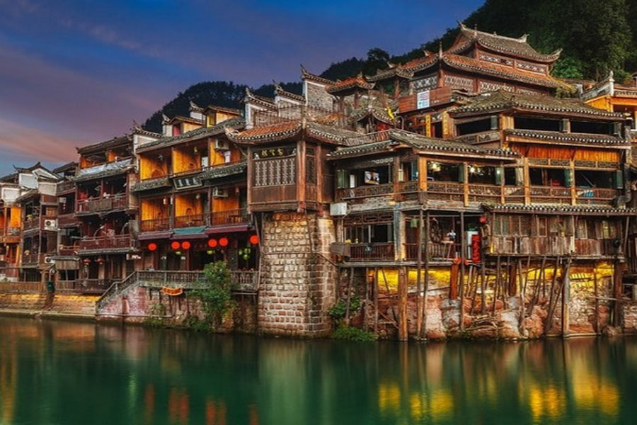 - Trả phòng, lên xe khởi hành đi Phượng Hoàng cổ trấn.