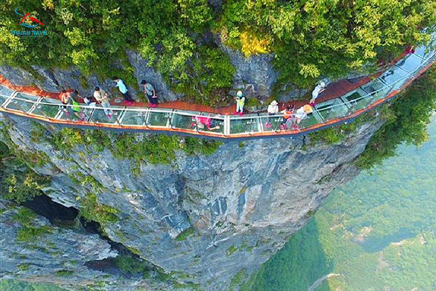 + Trải nghiệm Sạn Đạo Kính (Cầu kính – con đường gác kính trên vách đá), con đường làm từ những tấm kính cường lực trong suốt, dày hơn 6cm. Con đường men theo vách núi dựng đứng, Skywalk đã trở thành một trong những điểm thu hút khách du lịch hấp dẫn nhất tại Trương Gia Giới.