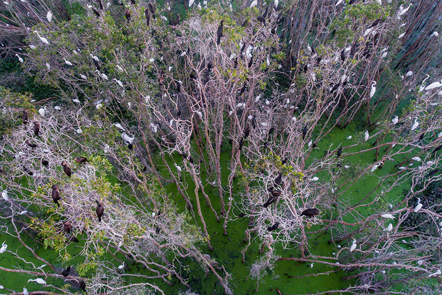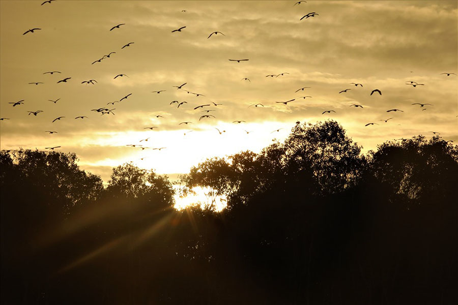 Vào thời điểm này, nước sông dâng cao, bao phủ khắp không gian, biến Làng nổi Tân Lập thành một hòn đảo xanh thẳm nổi bật giữa biển nước mênh mông. Đứng từ trên cao nhìn xuống, khung cảnh ấy đẹp đến nao lòng, như một bức tranh thiên nhiên khổng lồ, sống động và đầy màu sắc. Cảm giác được lênh đênh trên chiếc xuồng nhỏ len lỏi qua những tán tràm xanh mướt, ngắm nhìn hệ sinh thái đa dạng và hít thở bầu không khí trong lành, tinh khiết của thiên nhiên hoang dã thật sự là một trải nghiệm khó quên.