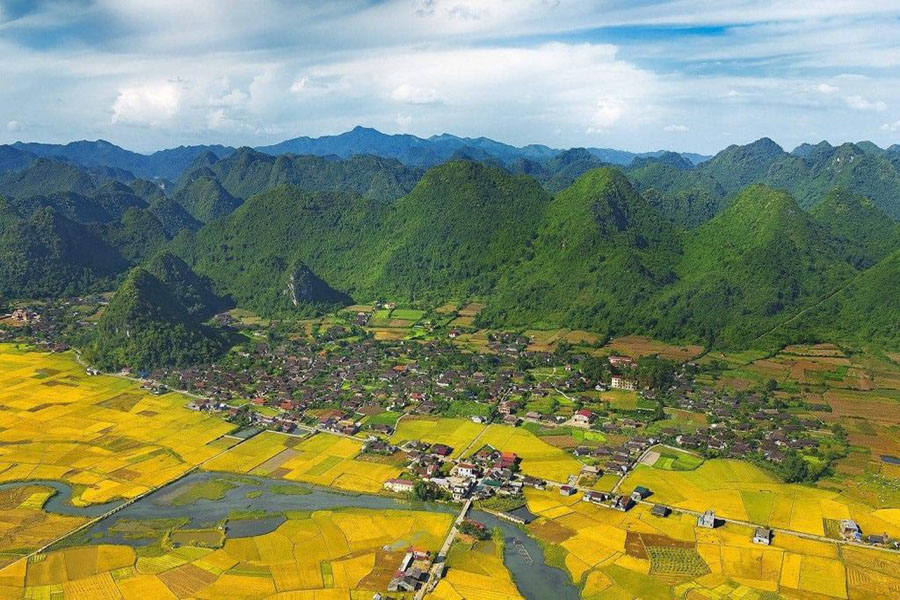 Ngôi làng nằm giữa thung lũng, ở độ cao hơn 600 m, được sông và các dãy núi đá vôi bao phủ nên quanh năm nhiều sương mù, mây phủ. Làng cũng là nơi các dân tộc Nùng, Dao sinh sống dưới nếp nhà sàn truyền thống. Nhìn từ trên cao là những mái nhà sàn san sát, ngăn nắp nép mình dưới chân núi mặt hướng ra cánh đồng.