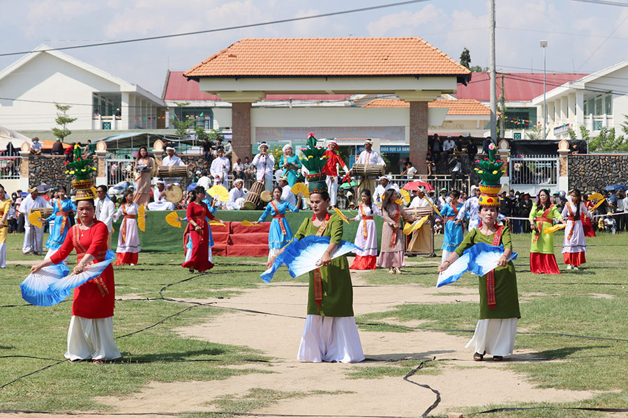 Sau khi kết thúc những nghi lễ trang trọng ở những đền tháp, cũng là lúc các làng Chăm lại chuẩn bị cho ngày hội làng, nhằm mang lại niềm vui và sự sẻ chia của cộng đồng. Trong hội, du khách sẽ được thưởng thức những âm sắc rộn ràng của các loại nhạc cụ truyền thống như trống Ginăng, kèn Saranai… và những cuộc thi tài sôi nổi thể hiện sự tinh tế và khéo léo của những thiếu nữ Chăm như thi dệt vải (làng Mỹ Nghiệp), thi đội nước,…