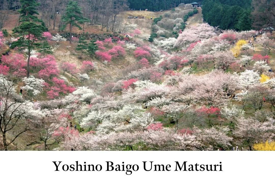 Nằm giữa đồi thấp và thung lũng sông phía tây thành phố, Yoshino Baigo mang đến cảm giác tách biệt khỏi phố thị ồn ào. Lễ hội ở đây không náo nhiệt, không đông đúc, chỉ có những lối đi nhỏ, hương hoa mận thoang thoảng và cảm giác an yên rất khó tìm.