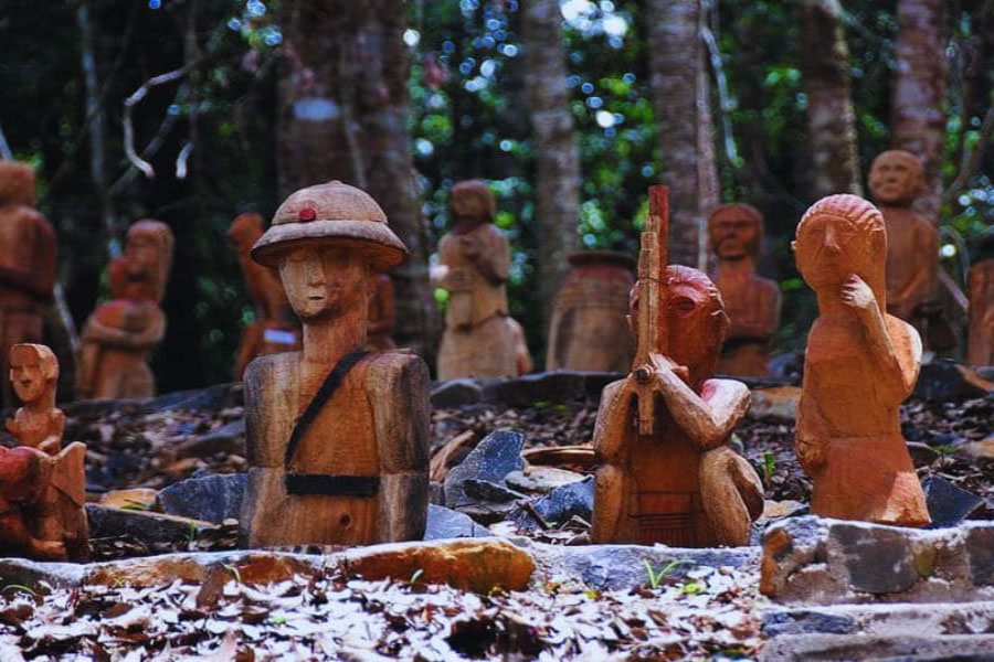 Dưới chân thác là hồ nước trong xanh, nơi nhiều du khách chọn ngồi nghỉ, chụp ảnh hoặc đơn giản chỉ để lắng nghe âm thanh của thiên nhiên. Xung quanh còn có 100 bức tượng gỗ khắc họa đời sống người đồng bào: từ cảnh săn bắt, dệt vải đến sinh hoạt lễ hội, giúp du khách hiểu hơn về văn hóa Mơ Nâm, Rơ Măm và Ba Na.