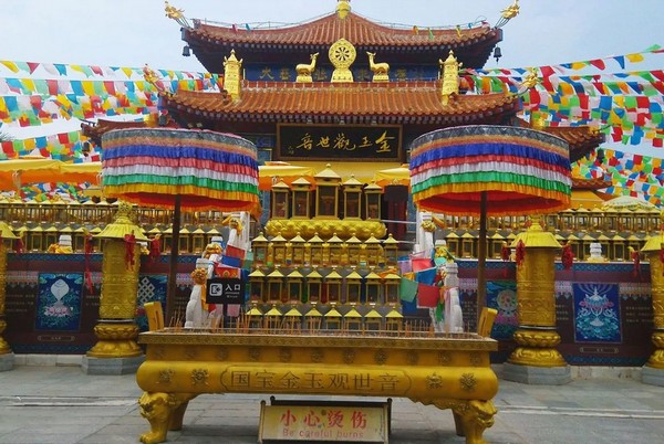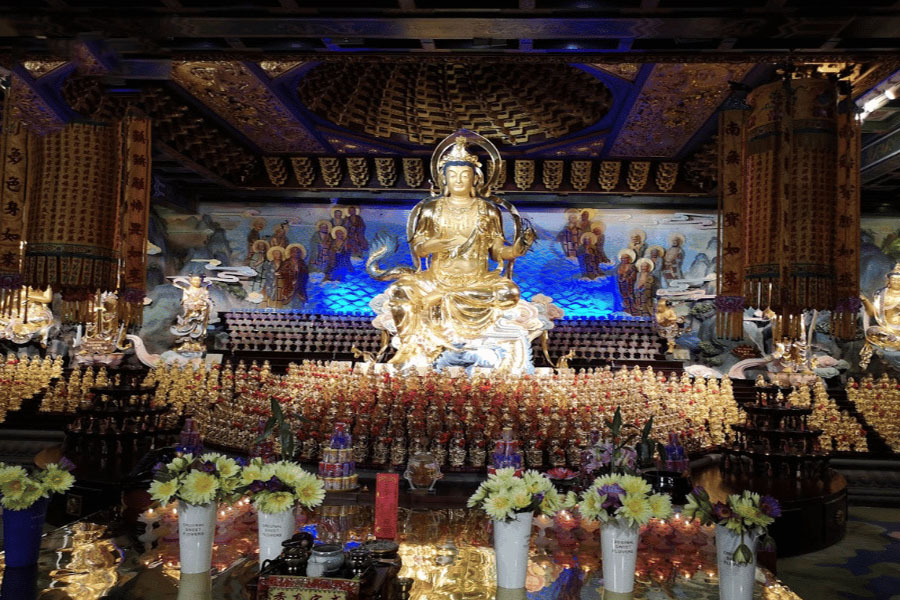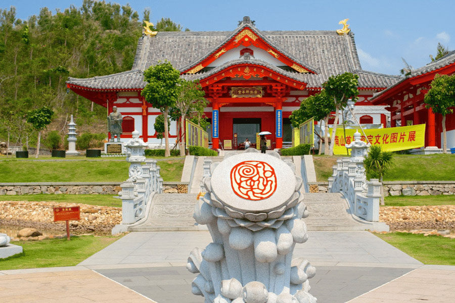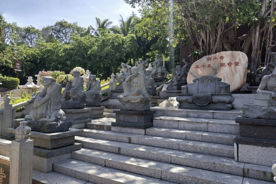 - “Trung tâm Văn Hóa Phật Giáo Nam Sơn” (không bao gồm vé xe điện): khu vực này có tổng diện tích lên đến 50km2 với các công trình Phật giáo đồ sộ, nổi bật nhất là chùa Nam Sơn – một trung tâm Phật giáo quan trọng trên đảo. Đến đây quý khách có cơ hội chiêm bái tượng Phật Bà Quan Âm Thượng Hải Nam Sơn đứng trên tòa sen cao 108m trên biển với ba mặt nhìn ra ba hướng tượng trưng cho Từ bi, Bình an và Trí tuệ. Cũng theo điển tích Trung Hoa nếu đến lễ Phật ở Nam Sơn sẽ mang được phúc đức, may mắn về nhà. Tại đây còn một số thắng cảnh: Pháp Môn Bất Nhị, Tam Thập Tam Quan Âm đường, Miếu Nam Sơn, Trường Thọ Cốc, Vịnh Tiểu Nguyệt,….