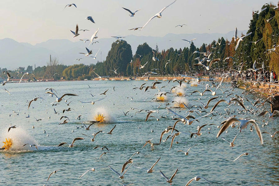 - Sau bữa sáng, quý khách di chuyển tham quan hồ Điền Trì, ngắm hải âu và trải nghiệm cho chim hải âu ăn.