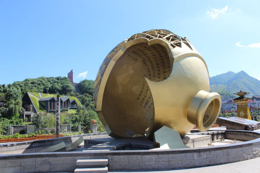 - Chụp ảnh lưu niệm với biểu tượng văn hóa rượu Mao Đài.