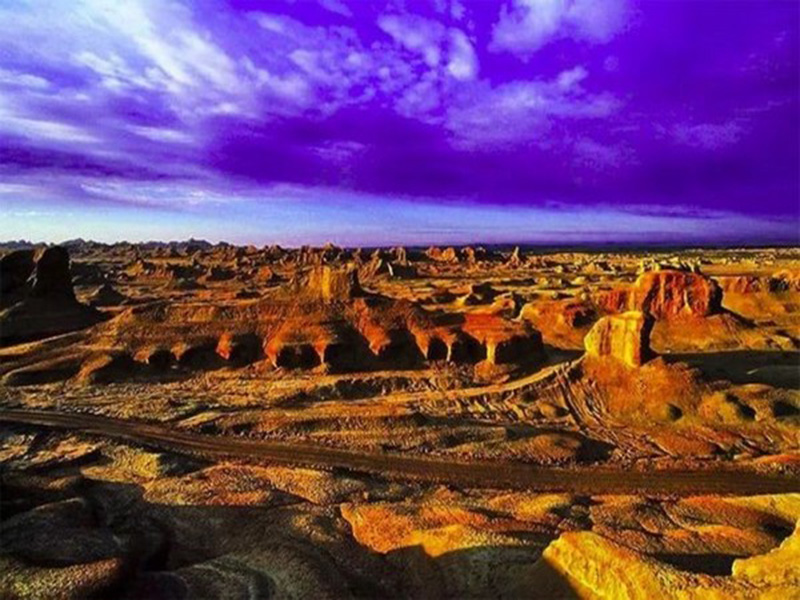 - Thành phố ma trên Biển: nằm ở ven bờ đông hồ Cát Lực (Hồ Jili), ở cửa sông Hồ Ulungu, thường được gọi là Đông Hà Khẩu, nơi có cả phong cảnh bờ biển và quyến rũ của hẻm núi. Địa hình Yardang rất lạ này chạy theo hướng bắc-nam và trải nghiệm dài hơn mười dặm. Mặt đất nhô lên tạo ra những hính thù kỳ quái và bao bọc lấy Hồ Cát Lực, Tiểu Hải Tử. Năm tháng Trôi qua, địa hình nơi đây bị mưa và gió làm mòn mòn, một số trông giống như cung điện nguy nga, chùa tháp vươn tới bầu trời, những vương thần huyền bí và trang béo, những con sư tử sau lên tận hỗ trợ trời, những vị phật bổ sung cho mắt và nhiều lâu đài khác nhau, sống động như thật, như được tạo ra bởi bàn tay khéo léo của người nghệ sĩ điêu khắc. Có cái nhô lên từ mặt đất bằng sừng, thẳng tắp, đầy nam tính bất khuất, có cái lại liên tục, cao thấp đan xen, nhìn ngang như núi, nhìn thẳng là đỉnh, có thể hiện đa dạng, tương quan độc quyền . Đây là một thế giới muôn màu, những lâu đài, hồ nước do thiên nhiên kiến trúc từ hàng ngàn năm nay đã phụ thuộc lẫn nhau, nói lên sự uy béo, hùng vĩ, bảo la và thương mại của thiên nhiên bằng biểu tượng ngôn ngữ.