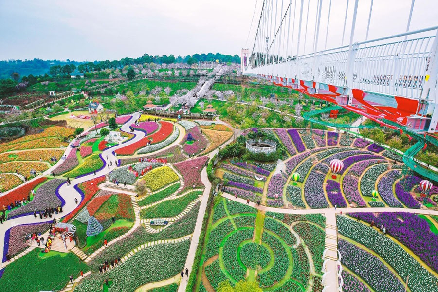 - Mạn Hoa Trang Viên (không bao gồm cầu kính). Đây là một công viên hoa chủ đề tọa lạc tại Thành Đô. (Mạn Hoa Trang Viên có thông báo sửa chữa từ 1/7/2025 và chưa rõ thời gian sửa chữa xong, trong thời gian chờ sửa chữa đoàn sẽ thay thế bằng điểm Lạc Đới cổ trấn)