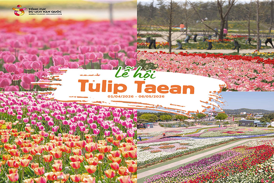 Taean Tulip Festival là một trong những lễ hội hoa tulip lớn nhất Hàn Quốc, được tổ chức tại tỉnh Chungcheongnam. Với hơn 1,5 triệu bông hoa tulip thuộc 300 loài khác nhau, nơi đây tạo nên một bức tranh thiên nhiên sống động và lộng lẫy. Không chỉ có hoa tulip, du khách còn có thể chiêm ngưỡng nhiều loài hoa khác như hoa cải vàng, hoa hướng dương và hoa cúc.