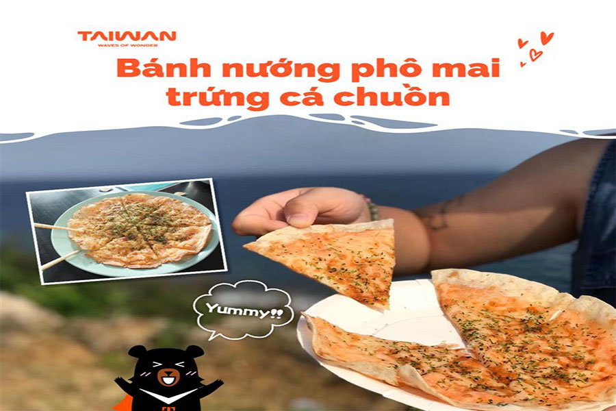 Bánh nướng phô mai trứng cá chuồn: Sự kết hợp độc đáo giữa đặc sản đảo và đồ ăn vặt hiện đại. Lớp phô mai béo ngậy đi kèm với những hạt trứng cá chuồn nổ lụp bụp trong miệng, tạo nên tầng tầng lớp lớp hương vị thú vị. Đây là món bánh phiên bản giới hạn chỉ có tại Tiểu Lưu Cầu mà bạn không nên bỏ lỡ.