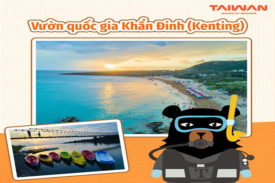 Khi hoàng hôn buông xuống cũng là lúc hướng về Khẩn Đinh (Kenting). Nếu ban ngày nơi đây là thiên đường nghỉ dưỡng yên bình, thì đêm về lại “lột xác” thành một khu phố náo nhiệt. Chỉ cần dạo bước quanh đây, bạn sẽ cảm nhận trọn vẹn nét quyến rũ độc bản và sự nồng hậu rất riêng của vùng đất phương Nam này.
