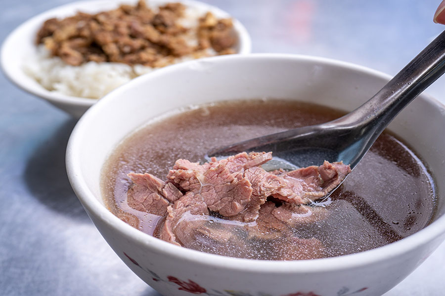 Thịt bò địa phương tươi ngon được thái mỏng, chan nước dùng sôi nghi ngút ngay khi dọn ra – tạo nên món súp thanh vị nhưng đậm đà. Cách bắt đầu buổi sáng đầy năng lượng của người Đài Nam.
