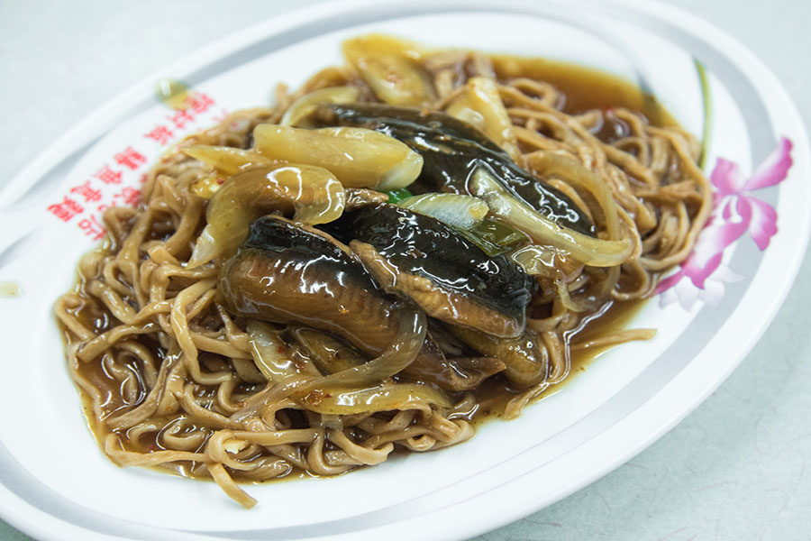 Lươn được xào trên chảo lớn, ăn kèm mì Yi dai mềm trong lớp sốt chua ngọt đậm đà. Một biểu tượng của ẩm thực Đài Nam – thơm nồng và đầy cá tính.