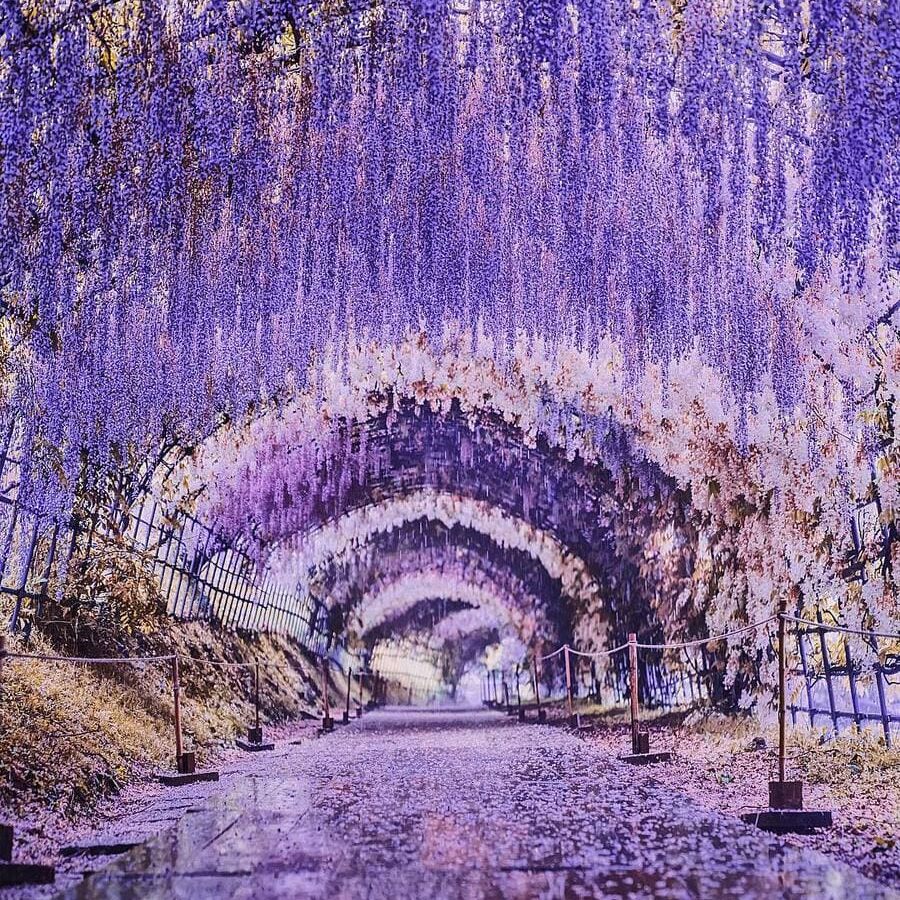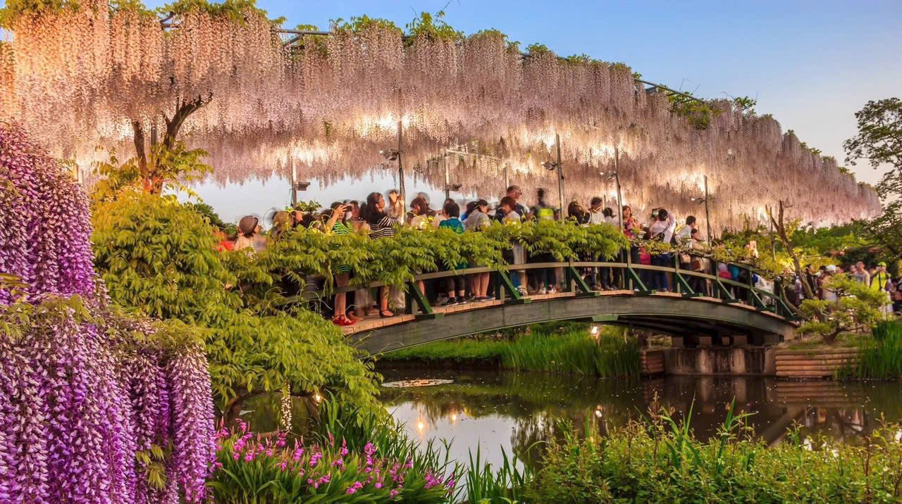 Tháng 4 là thời điểm Nhật Bản bừng nở rực rỡ với hoa Tử Đằng quyến rũ và hoa Chi Anh rực sắc hồng tím.
